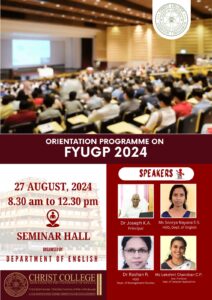 The Orientation Programme for FYUGP students of S1 BA English Major (2024 Admission) was held on 27th August 2024 at Christ College, Vizhinjam. Dr. Joseph