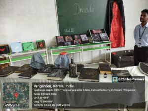 The Department of English proudly hosted “Ars Gratia Artis,” a captivating literature exhibition, on October 30, 2024, from 9:00 am to 1:30 pm. Inaugurated by Principal Dr Joseph K. A. in the presence of Dr Usha Satheesh, Staff Secretary, Head of Department,Ms Soorya Nayana , and esteemed faculty members from various departments, the event showcased over 50 innovative literature exhibits prepared by the students.