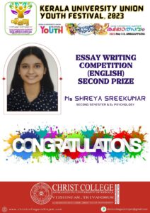 KERALA UNIVERSITY YOUTH FESTIVAL 2023 – ESSAY WRITING(ENGLISH) SECOND PRIZE Read More » June 10, 2023