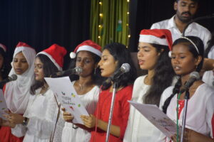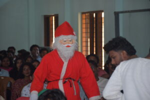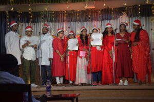 The program commenced with a prayer service and welcome speech, followed by a ceremonial cake-cutting ceremony by Santa . The college choir sang melodious carols, filling the air with festive cheer. The celebration concluded with featuring a cultural show and prize distribution ceremony.