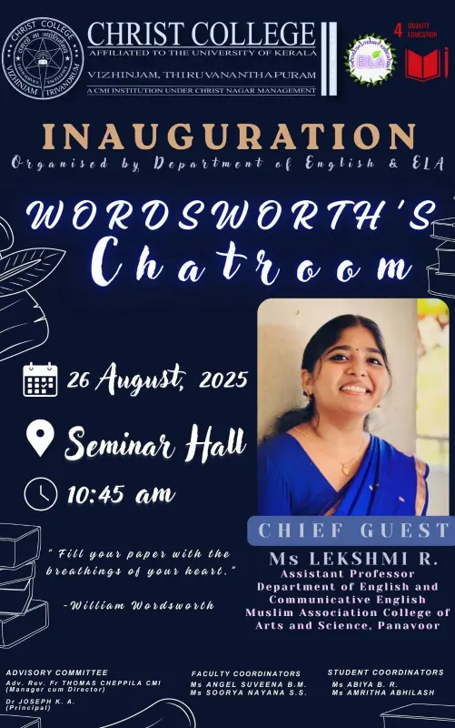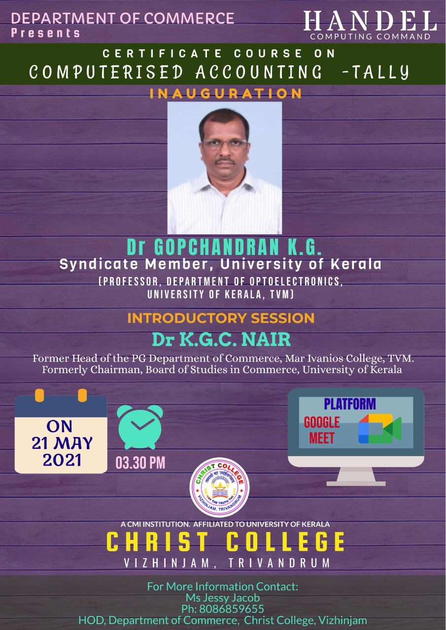 The Department of Commerce at Christ College, affiliated with the University of Kerala has quickly established itself as a leading academic unit since its inception in 2014. With a strong focus on delivering high quality education the department aims to empower students with the knowledge and skills required to thrive in the dynamic business landscape.