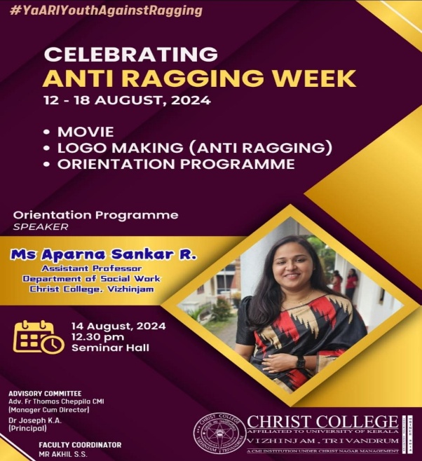 As part of the observance of Anti-Ragging Week, which took place from the 12th to the 16th of August 2024, various programs were organized by