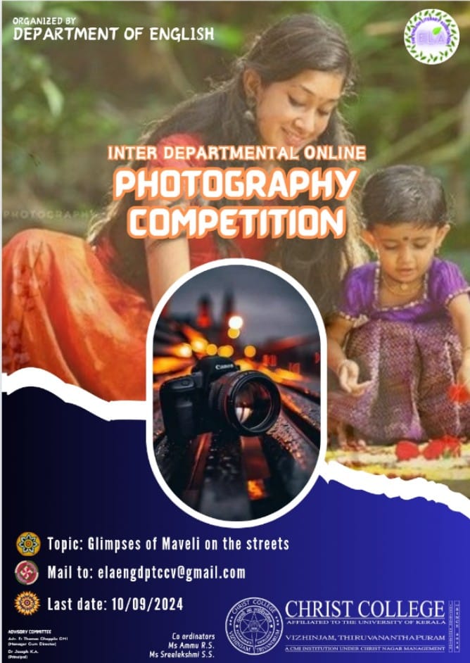 The English Literary Association, Department of English has organized an interdepartmental online photography competition in association with the Onam celebration 2024. The competition was based