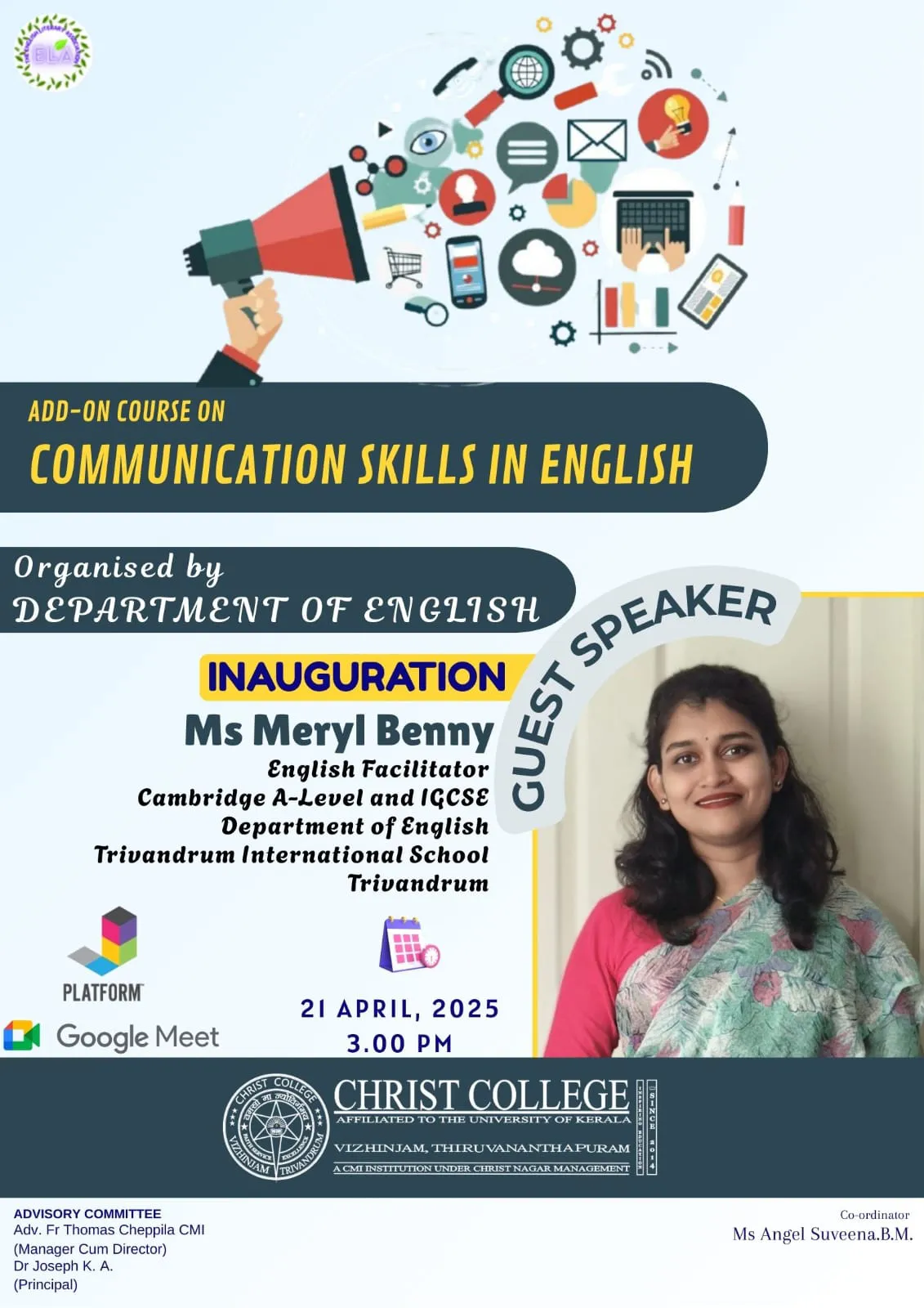 The Department of English at Christ College, Vizhinjam, successfully conducted an add-on course on Communication Skills in English for Semester 4 BA English Language and