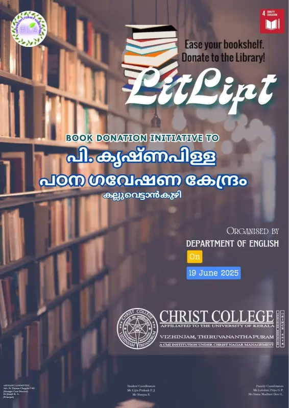 The Department of English, Christ College, Vizhinjam, successfully hosted ‘Inkspire,’ a Reading Week celebration from June 16-20, 2025. The event featured engaging activities like Read-a-Thon,