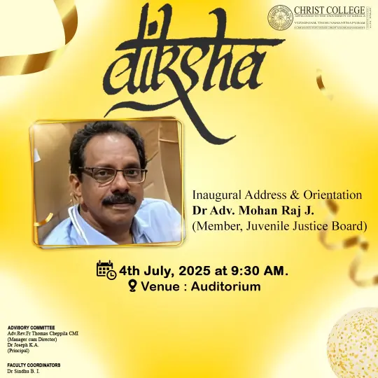 Diksha 2025, an inaugural and orientation program for the new academic year, was successfully conducted at Christ College Vizhinjam on 04/07/2025. The event aimed to