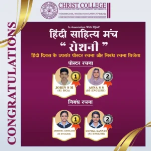 The Roshni Hindi Club of Christ College, Vizhinjam, organized vibrant Hindi Diwas celebrations, engaging students in activities that honoured and promoted the Hindi language. The event featured two major competitions: