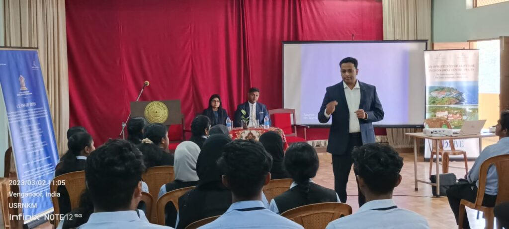 The program started with welcome section of the dignitaries by Mrs Malu Velayudhan (Assistant Professor of Commerce Department). The section continues with the valuable words of our principal Mr Joseph K.A. And the full responsibility of the program was hand over towards representatives of The Leela Group Mr Sabarinadh(Sales Head), Mrs Debsmathi(HR Associate), Balu Jhon(Training Manager). They started the section with self introduction part. Then switch over to a video representation about Mr CP Krishnan Nair founder of The Leela Group. After that they used to introduce the students about a Leadership course provided by The Leela. Finally they wind up the introductory part of the placement drive on 12:30pm. After a break of one hour the interview section begins for several designation in front office, accounts and finance , sales and marketing Etc. The interview section comes to an end on 4:00pm.