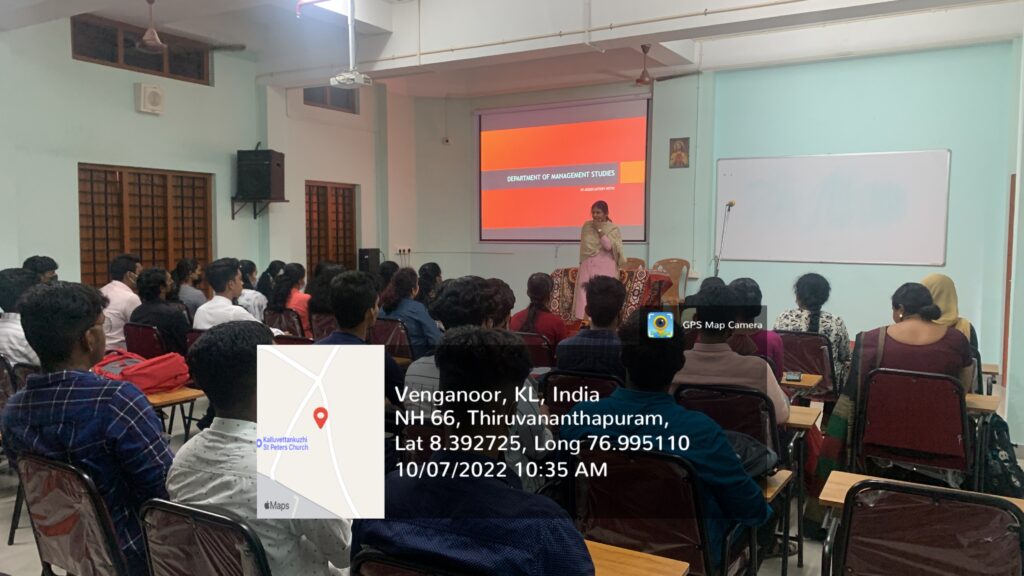 CHRIS SYNERGY, the management association of Christ College in association with the Department Of Management Studies conducted an Orientation Programme for the 1st semester BBA students on Friday the 7th October. The session was on professional grooming and the resource person was Ms Heera S Kumar assistant professor DCSMAT, Trivandrum Ms Heera is experienced in both corporate training and academic teaching