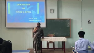 The Orientation Programme on SWAYAM and NPTEL Courses, conducted by the Department of English at Christ College, Vizhinjam on 11th July 2025, aimed to introduce students to India’s premier online learning platforms, emphasizing their structure, benefits, and academic relevance. Dr Jessy Jacob, the resource person, provided detailed guidance on registration, course selection, certification, and credit transfer under the FYUGP system. The session encouraged interdisciplinary and skill-based learning, digital literacy, and self-directed education. Student feedback was largely positive, highlighting the session’s clarity and usefulness, though a few suggested improved communication for better understanding in future events.