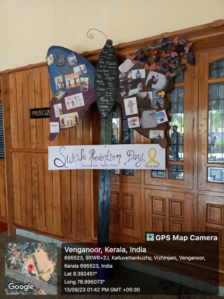 The triennial theme since 2021 has been “Creating Hope Through Action” and has continued on for the year 2023 as well. It has been the aim for the students of Christ College, Vizhinjam as well. With the joined efforts of the students and the faculty from the department of psychology, our college celebrated Suicide Prevention Day on with programs that prolonged for two days. Programs were conducted on 13th and 14th of September, 2023 as a part of the celebration in the forms of competitions and artistic displays by the students of the department of Psychology. With the active participation of first year and final year undergraduates of Christ College Vizhinjam, the event was a wonderful success in creating awareness as well as gravitating the focus of our young generation to a grave topic like such through artistry and as well literary talents of our future civilians.
