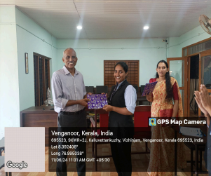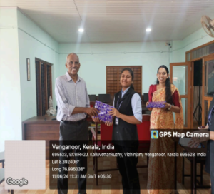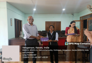 On 11 th june , 2024, honorable principal Dr. Joseph K A awarded the first and second semester A grade holders of 2022-2025 batch. A gathering of student body and faculty body of psychology department was held at psychology laboratory which commenced on timing of 11:30 to 11:45. Semester 1 A grade holders Gouri Krishna B L , Nandhini N K , Laya V Unni and Nandana N S were awarded with semester 2 toppers Laya V Unni.