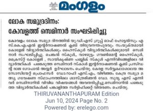 A group of 47 students from the Fourth and Second Semesters of the B.Com. Tourism and Travel Management program, accompanied by a faculty member, attended a seminar titled ‘Waves of Change’ on Saturday, June 8th, 2024. The seminar was held from 10:30 AM to 11:45 AM at the Uday Samudra Leisure Beach Hotel in Kovalam. Organized as part of the hotel’s CSR initiative, the seminar offered a valuable learning experience for the students. The program included: